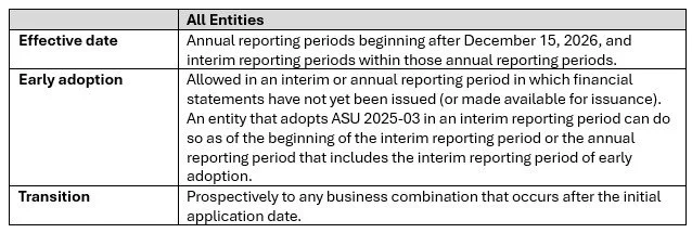 The following table summarizes effective dates and transition for ASU 2025-03: